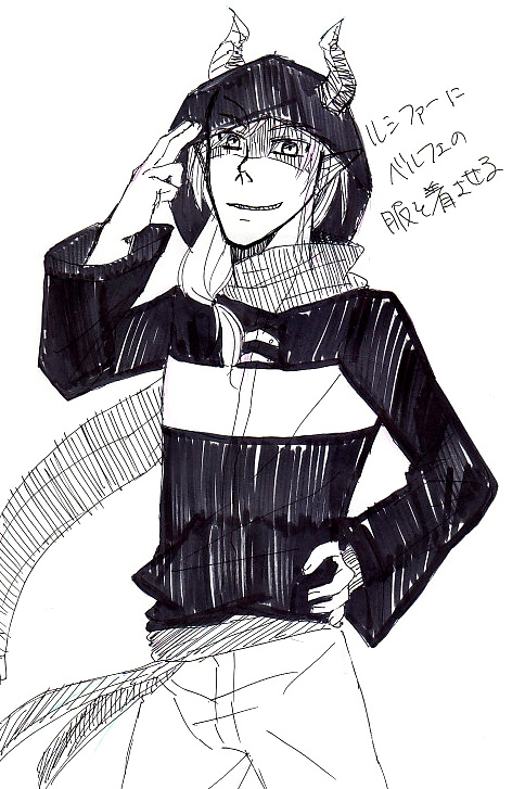 ルシファーとベルフェ。ルシファーがノリノリでなによりです。 ベルフェはやる気のないホストみたいに。横で寝ているだけなのに指名料をきちんと取られる。 続いて女子組み。アスモデウスはともかく、レヴィアタンがこっ恥ずかしいことになって、描いてて罪悪感を覚えました・・・。幼女はこんなに露出しちゃダメなんですよ。 私事ですが、本日家の玄関にマモン教の祭壇を作りました。 家族からは色々不平不満が零れてますが、教祖が決めたんです。しばらくこのレイアウトで、我が家の玄関はいきます。これで他の教派が勧誘にきてもきっぱりと断れますね! 明日、起きたらお金が貯まってますように・・・。 |