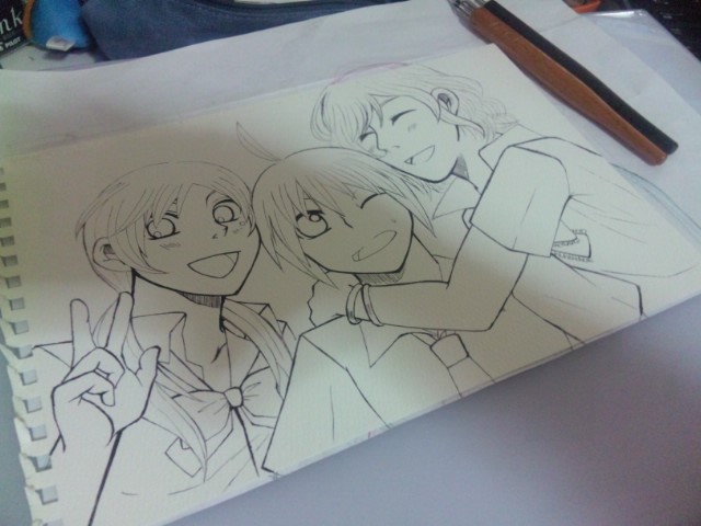 一体今回で彼らをペン入れをしたのは何回目でしょうか。 色を塗る度に気に入らなくて、何度もやり直しています。いい加減にそろそろ止めたい。 この絵にはこうなるまでの過程があるんですが、漫画にして一緒にアップしたいと思ってました。(過去形)今となっては描けるかどうかわかりません・・・すみません。 なるべく描きたいです。 本日から学校が始まりました。 がんばって漫画の更新をしましたが、これからはなかなかそうもいかず。 二重生活になると、時間が取れなくて悲しいです。でもなんとか、今年の目標である「本編を始める」を実現するため、ちょっとずつ創作設定を練ってます。 ちゃんとお披露目できるよう頑張りたいです。 今週末にいつもお世話になってる卯月このかさんと青森へ行ってきます! |