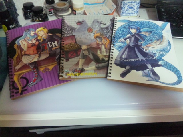 自己満足でこんなものを作ってみました! 全部で5種類。シルエットデザインは創作設定用、マモン本体は家計簿用、他の3冊は自由帳用です。 印刷屋さんはEmayu様です。Twitterでお見かけしたのですが、RGB対応で印刷も綺麗ですし満足しています。 これを使って少しでも創作意欲が湧けばなあと思います。あと、家計簿で支出しめたいです。 そこはマモン様にご協力いただきましょう! 続きから中身や裏表紙を紹介してます。 MORE>> 2013/06/03 (Mon)