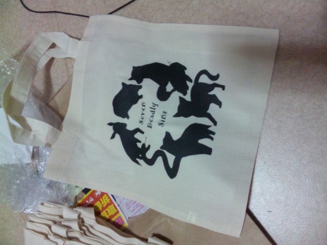 水面下で原稿描いてます! このベルフェを描いてた時は、テンションMAXでした。不敵な笑みいいいいい!!な感じで。 これが彼の精一杯の魔王アピールです。一応魔王・・・だと思いたい。 コミティア当日には、本以外にもグッズを置きたいと思います。 とりあえず、ポストカードと、ペンケース。ペンケースはすでに注文済みです。 あとトートバックも作ったのですが、こちらは単体販売は予定してません。 本とトートバック、そしてポスカ2種類をセットにした、限定セットという形でお渡しいたします。 ペンケースもトートバックも、とりあえず作ってみただけなので数量は少なめです。 何はともあれ、初めてなことばかりなのであたふたしてますが、がんばります! |