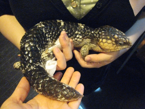 大学の帰りに爬虫類カフェに寄ってきました。 今回のところはお触りOKでした。 この子はニシマツカサトカゲだそうです。 よくおしっこするそうで、お尻にテッシュ敷いて抱っこしました。 鱗すごいですねーこれなら鎧を作れそう。 あとは、パイソン(蛇)やミミズク・ハヤブサをもふもふしてきました。 蛇はもふれませんけど。 私は「そうか…レヴィアタンはこんな感じなのか…。」といいながらさわさわしてました。 店員さんごめんなさい、意味不明なこと言ってて。 2012/05/27 (Sun)