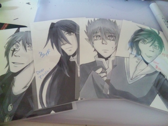相変わらず机汚いです。 消しカスのせいで、綺麗になってくれないのです。 履歴には書いてませんが、BKMが増えました。 さて、本日は前々から企画してました、爬虫類カフェへ行く会と称したオフ会をしてきました。 メンバーは、卯月このかさん・夜月葵さん・平谷マコトさん・Kainさん、と私を含めた5人でした。 画像はみなさんにプレゼントした、各お宅のお子さん達です。 突発的に描き始めたもので、全員分完成したのは朝でした、はい。 簡単に写真とレポートを続きにあげておきます~。 PR more≫ 2012/06/26 (Tue)