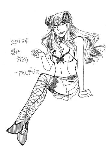 天使時代のお兄さんベルフェゴール。 マモンを弟子にとり、一人立ちするまで育ててました。 マモンの蹴り技は師匠譲り。したがって、師匠も近接攻撃は得意です。 描き締めと描き初めのアスモデウス。左側の方がお気に入り。 沙良はこういうポーズが多い。 ルシファー。あまり描かないのでたまには描いてあげましょう。 アスモとベルフェ。この2人実は同期だったり。 でも、ベルフェは女性嫌い(というか単にアスモみたいな人は苦手)なので、ぎりぎりいがみ合っていることもある。マモンとレヴィよりは仲良いですが。 以上、年末~年明けにかけての落書きでした。 最近ゲームばかりで、絵を描いてなかったので良いリハビリになりました。 2015/01/01 (Thu)